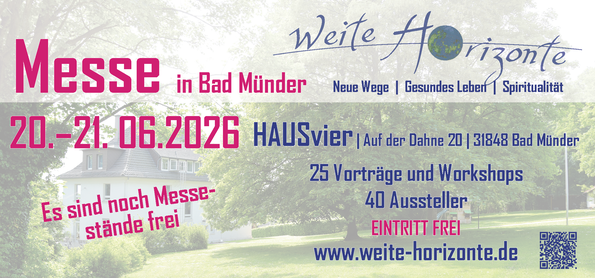 Die erste Weite Horizonte Messe 2025 im HAUSvier in Bad Münder war ein großartiger Erfolg. Die AusstellerInnen freuten sich über interessante und intensive Gespräche mit den Besuchern und Interessenten. Die Vorträge waren gut besucht und es wurde auf vielen Ebenen viel mit nach Hause genommen.
